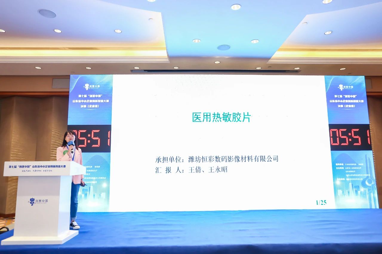 2022年8月30日至31日,由工业和信息化部、财政部指导,山东省工业和信息化厅、山东省财政厅、中共山东省委省直机关工作委员会主办的第七届“创客中国”山东省中小企业创新创业大赛决赛在济南成功举办,潍坊恒彩数码影像材料有限公司“医用热敏胶片”项目获得优胜奖。
